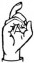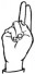 На ћирилици написано БОГИЋ КАИЋ састоји се из 9 слова [?]. Исписано ћириличном једноручном азбуком за глувонеме: